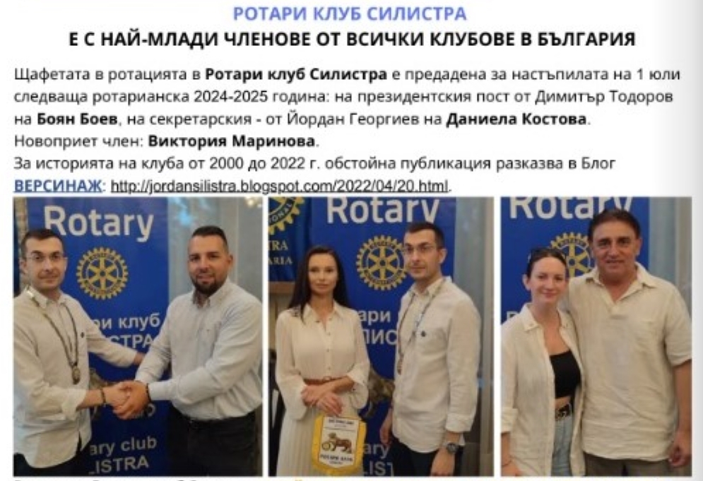 Сред акцентите в публикацията е отбелязването на сравнително младия състав на клуба в Силистра, който се откроява с най-ниска средна възраст на членовете сред 85-те клуба в България с общо близо 2 000 ротарианци. Ротари клуб Силистра е създаден с подкрепата на Варненския ротариански клуб и президента му тогава Наско Рафаилов. През 2005 г. силистренският клуб създаде и Ротари клуб Тутракан, към който продължава да функционира младежката организация Интеракт клуб.