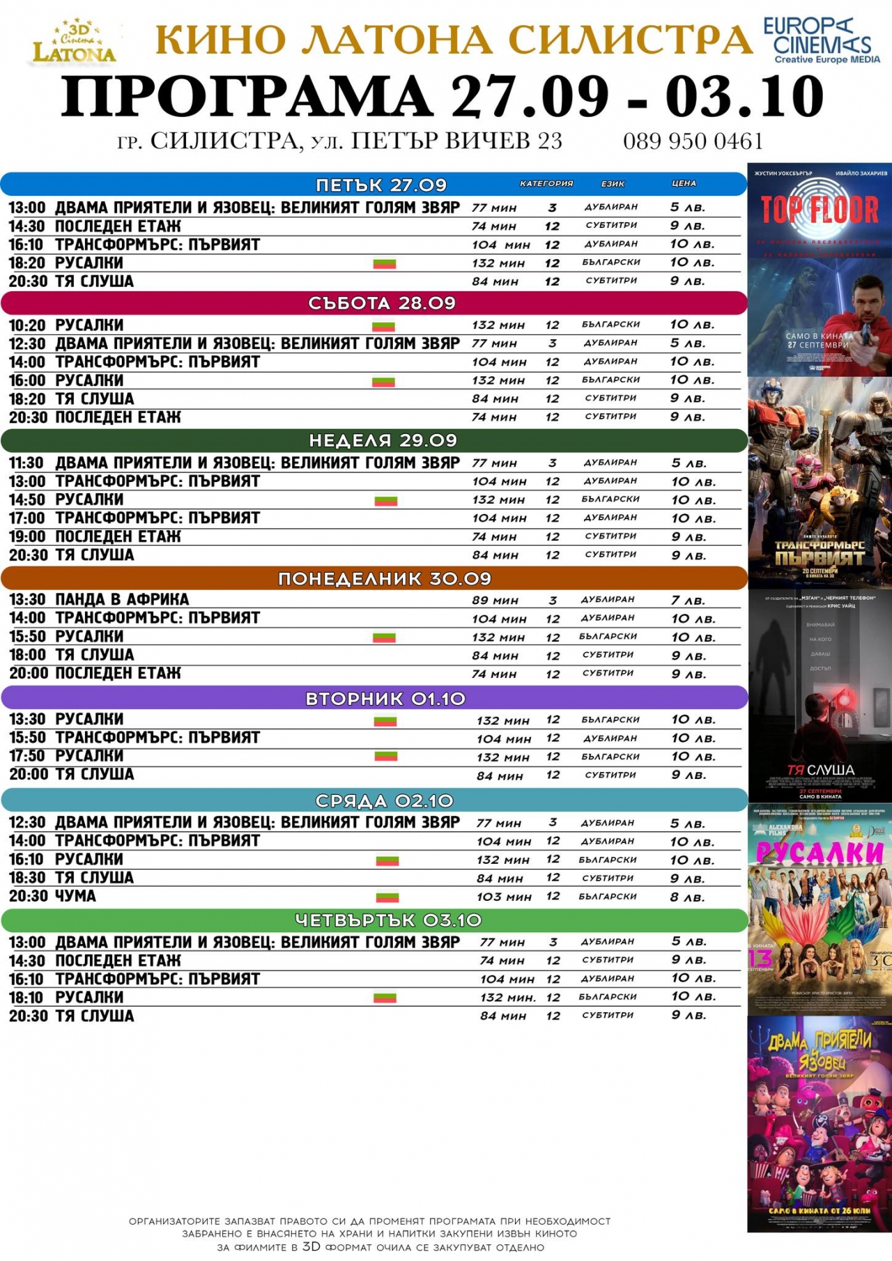 Киното продължава да предлага и други хитовe като "Трансформърс: Първият" и "Русалки", които продължават да радват публиката.