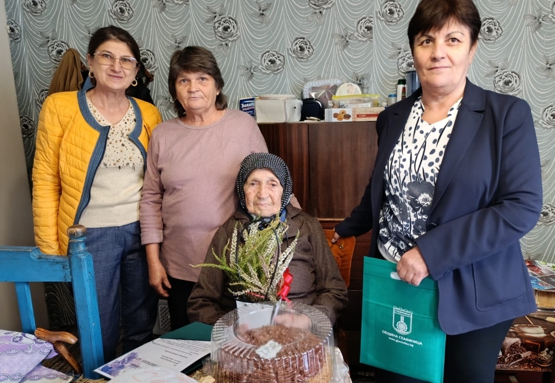 На празника си тя беше посетена от г-жа Иванка Сярова, зам.-кмет на Община Главиница, и г-жа Галина Ангелова, кмет на с. Малък Преславец, които поднесоха цвете, торта и поздравителен адрес от името на кмета на Община Главиница г-н Неждет Джевдет.