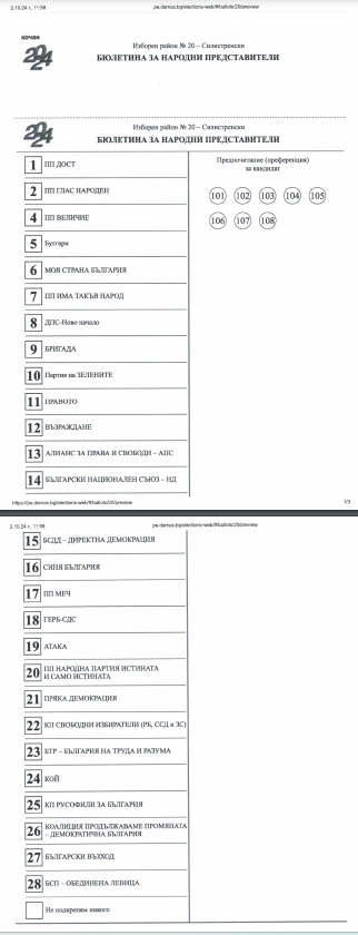 РИК-Силистра потвърди, че предоставеният графичен файл на бюлетината съответства на регистрираните кандидатски листи за 20-ти изборен район - Силистренски. Въз основа на това, комисията одобри както графичния файл, така и тиража на бюлетините, който ще бъде 125 000 броя.