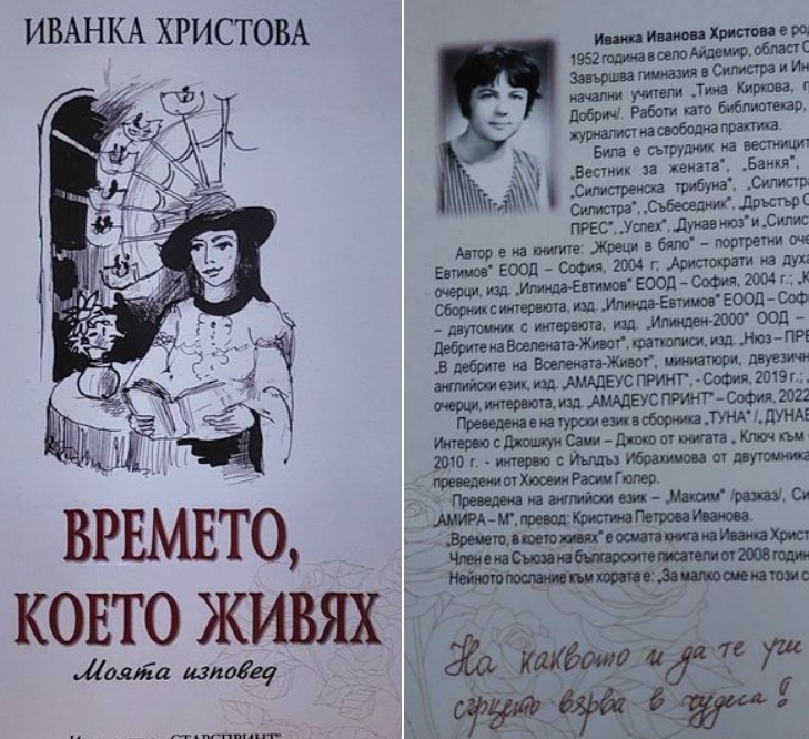 Иванка Христова от Силистра представя осмата си книга "Времето, в което живях" (Моята изповед). Тя е дългогодишен член на Съюза на българските писатели (СБП) от 2008 година и със своя нов труд поднася на читателите истинско литературно пътешествие, обхващащо повече от половин век творческа дейност.