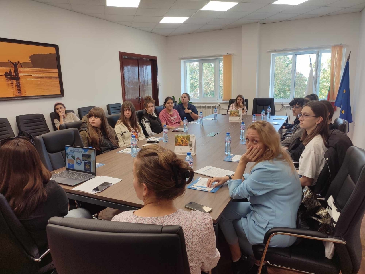 Младежите от СУ "Христо Ботев" и СУ "Йордан Йовков" заедно с техните ръководители Радка Трифонова, Мария- Луиза Христова, Раданка Ангелова-Спасова и Теодорина Григорова бяха посрещнати от Сашка Атанасова - директор дирекция "Образование, култура и младежки дейности", която им представи екипа и структурата на Община Тутракан.