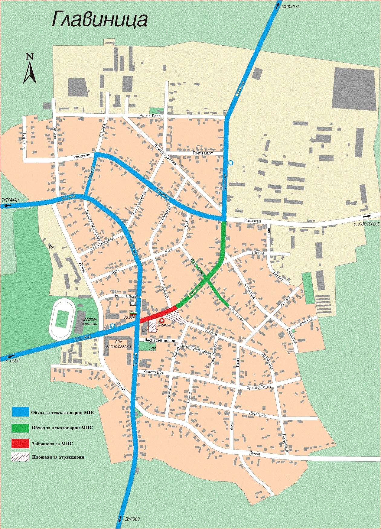 2. Обходни маршрути: Ще бъдат поставени указателни табели, които да насочват лекотоварния и тежкотоварния трафик по обходни маршрути.