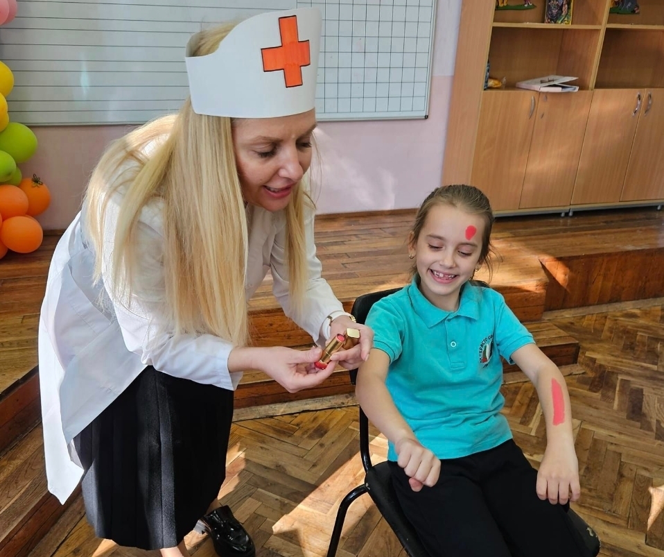 Учениците от 1.в клас на ОУ "Христо Смирненски" в град Дулово има вълнуваща среща с професията "Медицинска сестра" в петък. На гости им беше г-жа Елена Неделчева, която представи професията по увлекателен и интерактивен начин чрез игри и практически занимания. Малките първокласници с интерес слушаха разказите и активно участваха в дейностите, които бяха подготвени за тях.