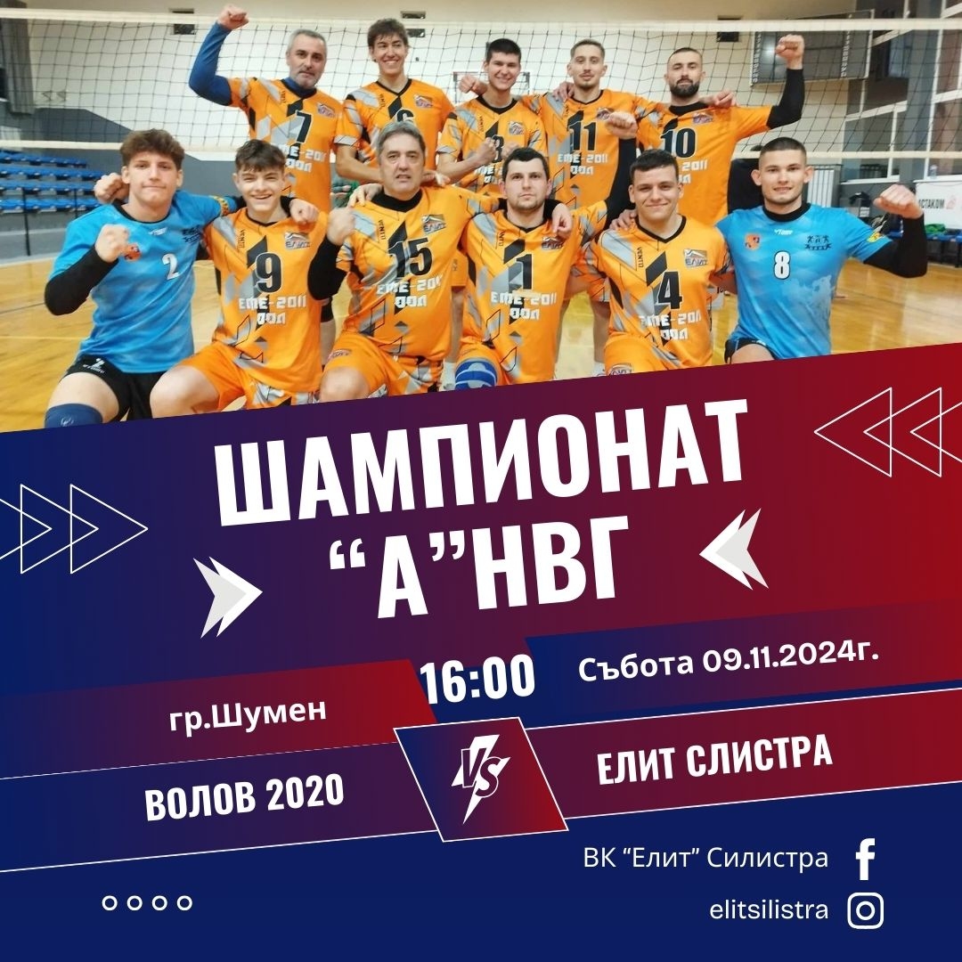Днес, 9 ноември 2024 г., ВК "Елит" Силистра ще се изправи срещу домакините от ВК "Волов 2020" в Шумен. Волейболната среща ще се проведе в зала "Младост" и ще започне в 16:00 часа. Мачът е част от 2-рия кръг на първенството в "А" Национална волейболна група (НВГ).