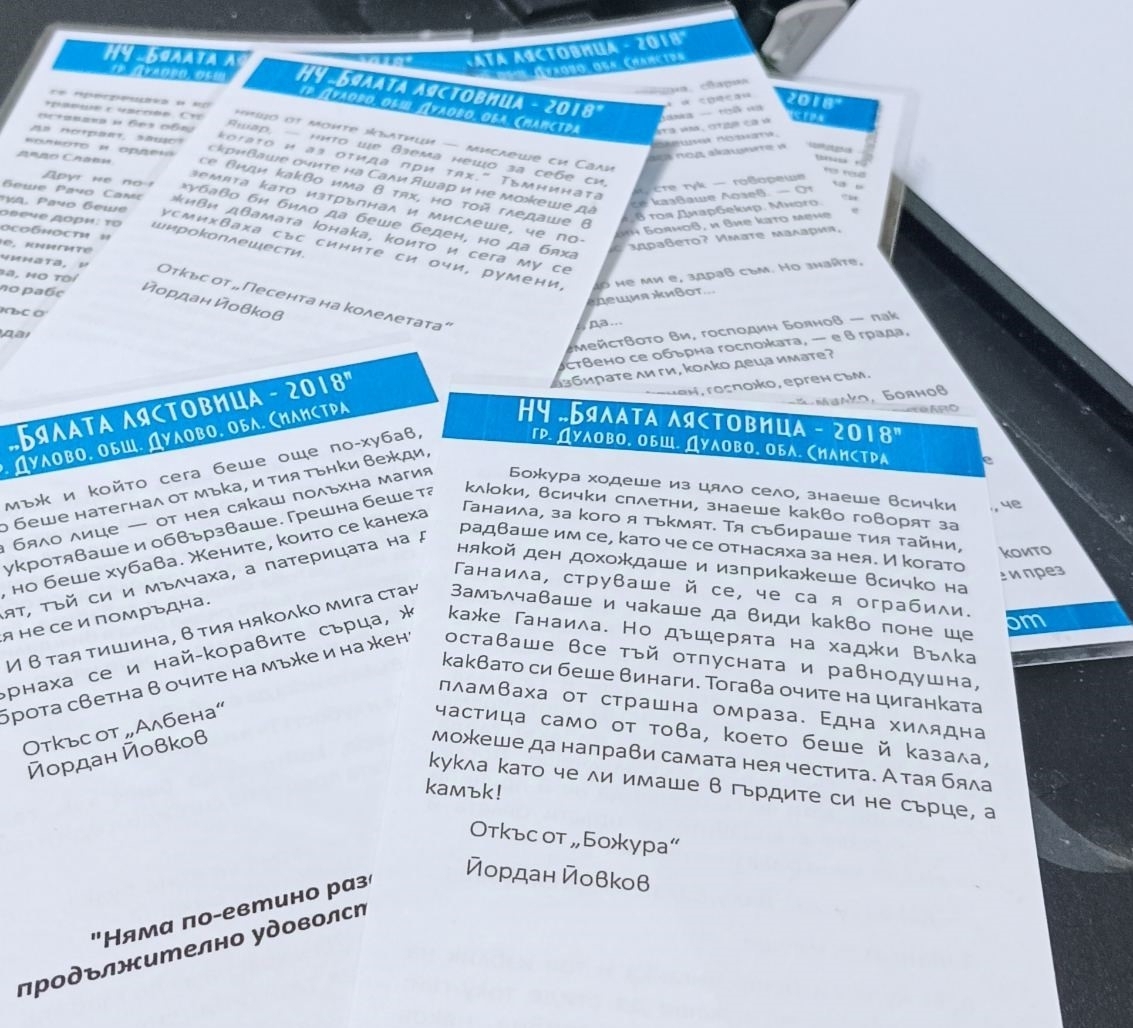 Тази година патронният празник на НЧ "Бялата лястовица" – град Дулово, бе отбелязан по уникален и вдъхновяващ начин. Вместо традиционни събития, читалището провокира жителите на града с кратки откъси от разказите на Йордан Йовков – писателят, който превърна обикновените човешки истории в прозорци към душата.