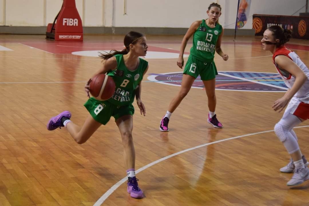В първия мач българските момичета се налагат категорично над връстническите си от Румъния с резултат 58:30. Още от началото на баскетболистките на треньорите Руслан Русев и Христиана Златкова взеха инициативата, доминирайки в играта. На почивката преднината им вече беше 33:24, а през второто полувреме българките лимитираха съперничките си до едва 6 точки. Моника Дюзова се включва със стабилна игра, записвайки 4 точки, 1 борба, 1 асистенция и 1 открадната топка.