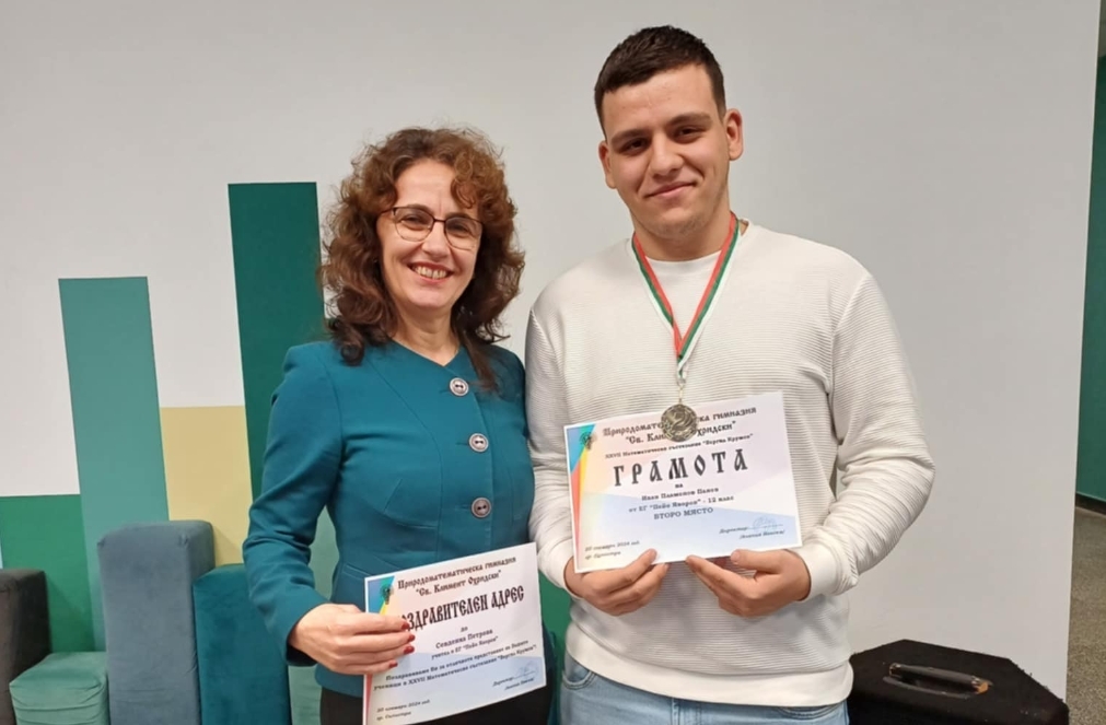 На 20 ноември 2024 г. се проведе традиционното математическо състезание "Вергил Крумов", което събира талантливи ученици от различни училища в региона. Сред тях блестящо се откроиха двама представители на Езиковата гимназия "Пейо Яворов" – Йордан Куртев от 11а клас и Иван Панев от 12а клас. Те показват изключителни математически умения и доказват високо ниво на подготовка в гимназията.