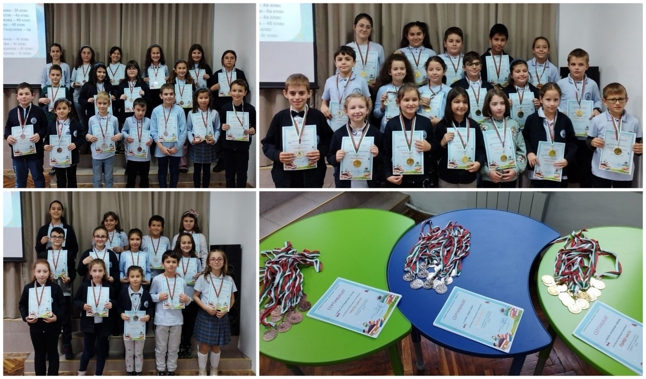 С голяма гордост и вълнение училището отчита впечатляващ успех – 50 медала , които демонстрират отличната подготовка и знания на участниците:
