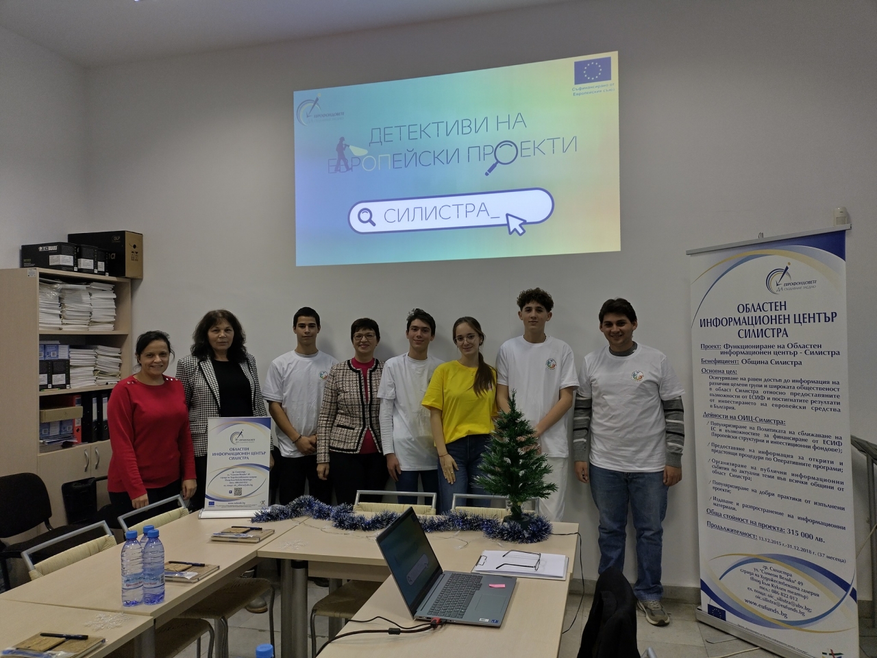 Представители на ученическия парламент в Силистра станаха част от националната кампания "Детективи на европейски проекти", съобщиха за БТА от местния Областен информационен център (ОИЦ). Експертите от Центъра представиха параметрите на кампанията и насочиха вниманието на активните млади хора към успешно реализирани проекти с европейско финансиране в Силистра