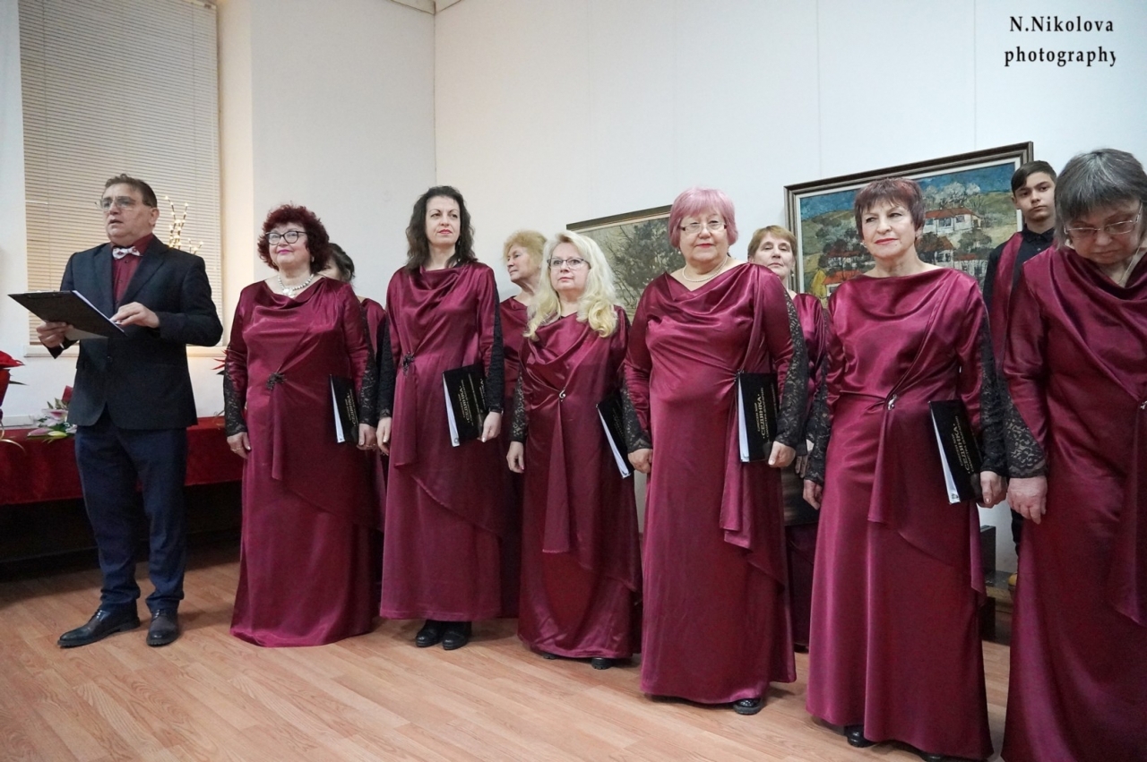 Един коледен концерт в навечерието на Коледно - Новогодишните празници напълни с почитатели на музикалната зала 13 на Художествената галерия. Изпълнителите на репертоара от концерта на тази вечер са участниците в СХ "Седянка" с диригент Лидия Кулева и ГСГП "Златна есен" с музикален ръководител Йордан Здравков Георгиев.