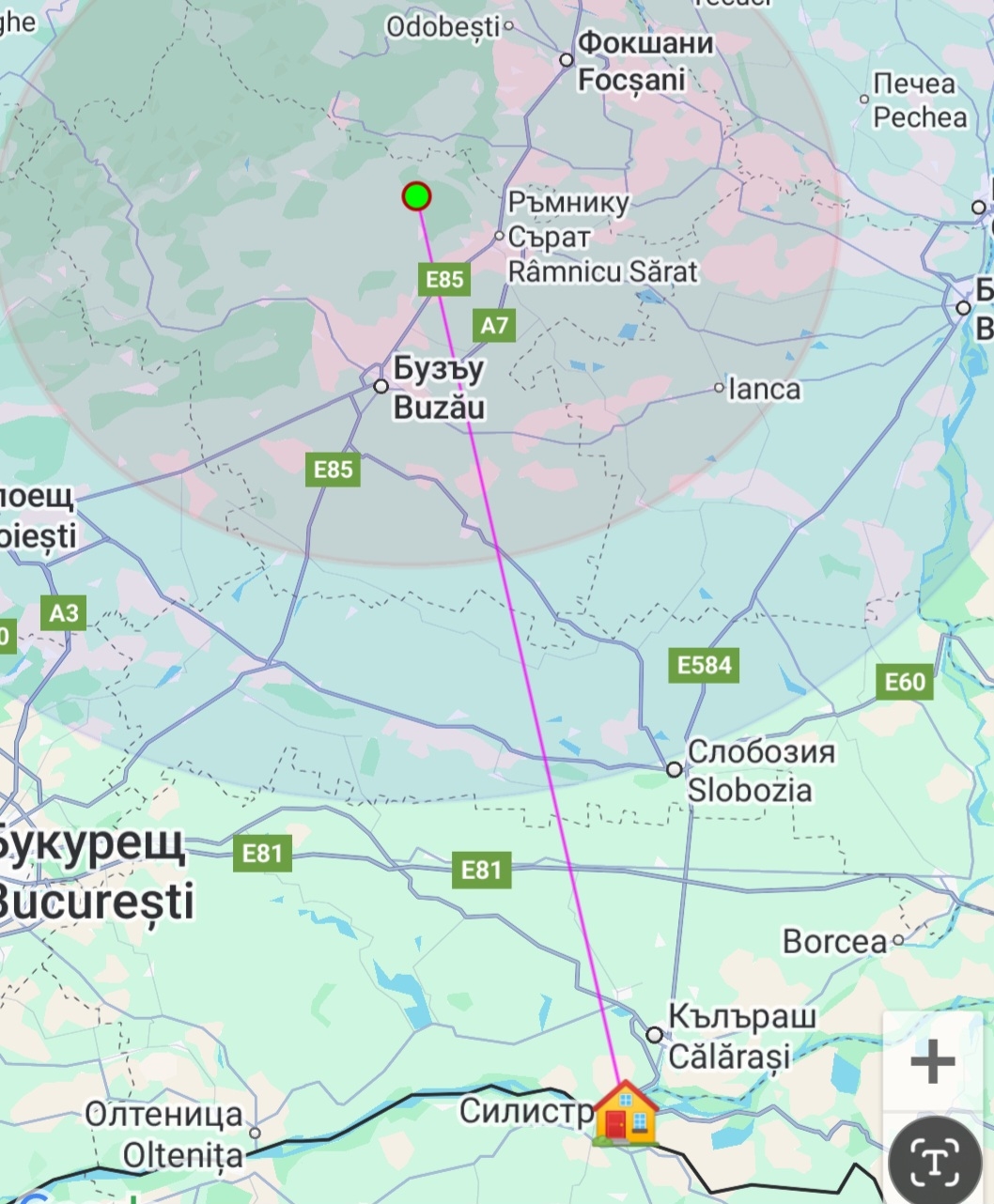•91 км западно от Галац,