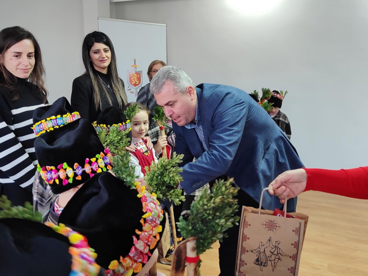 Както повелява традицията, старши комисар Недялков ги дари с кравай и торбички с лакомства. Той им благодари за прекрасното изпълнение и им пожела да са здрави и усмихнати през новата година.