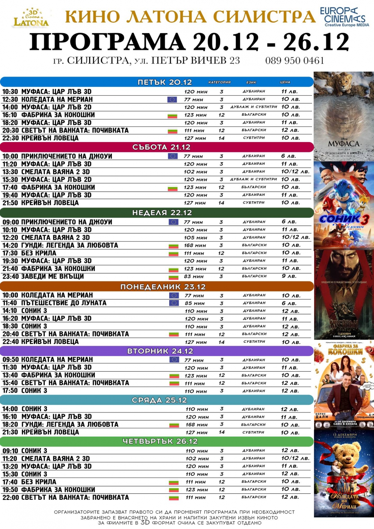 Краят на годината носи изобилие от филмови емоции в Latona Cinema – Силистра, с дългоочаквани премиери и предпремиерни заглавия, които ще зарадват киноманите от всички възрасти.