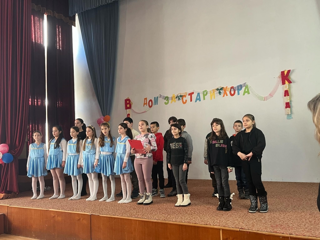 Малчуганите поздравиха възрастните хора с кратък, но вдъхновяващ коледен концерт, изпълнен с песни и стихотворения. Освен това те поднесоха ръчно изработени коледни картички с топли пожелания, които докоснаха сърцата на всички присъстващи.