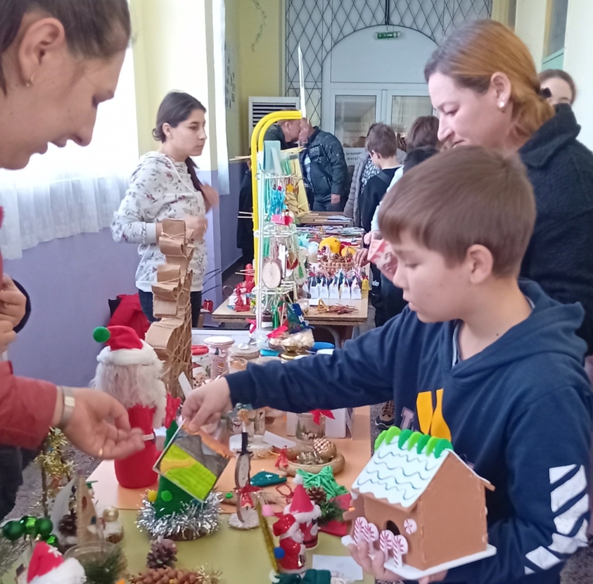 На базара се предлагаха разнообразни вкусни сладкиши, ръчно изработени сувенири и коледни картички, създадени с много любов от учениците и техните семейства. Атмосферата беше пропита с коледния дух и усещането за сплотеност и съпричастност.