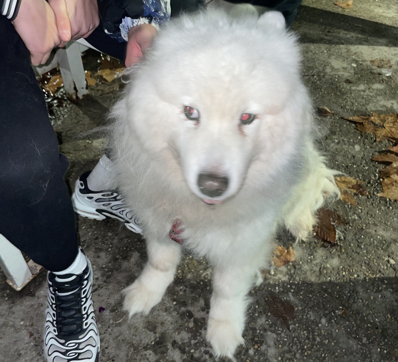 Днес в района на бензиностанция ОМВ, град Силистра, е намерено куче порода "Самоед". Животното носи червена каишка и изглежда добре поддържано. Вероятно е изгубено и стопаните му го търсят.