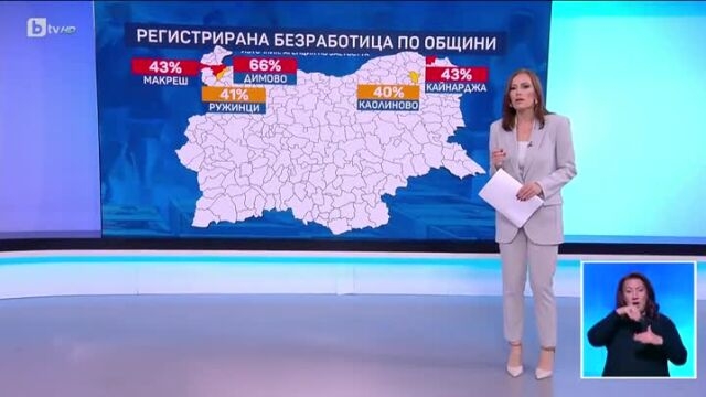 Въпреки общото ниско ниво на безработица в страната, някои региони остават с изключително високи стойности.