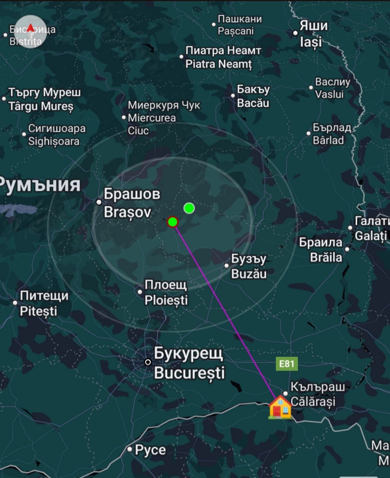 • 57 км източно от Брашов