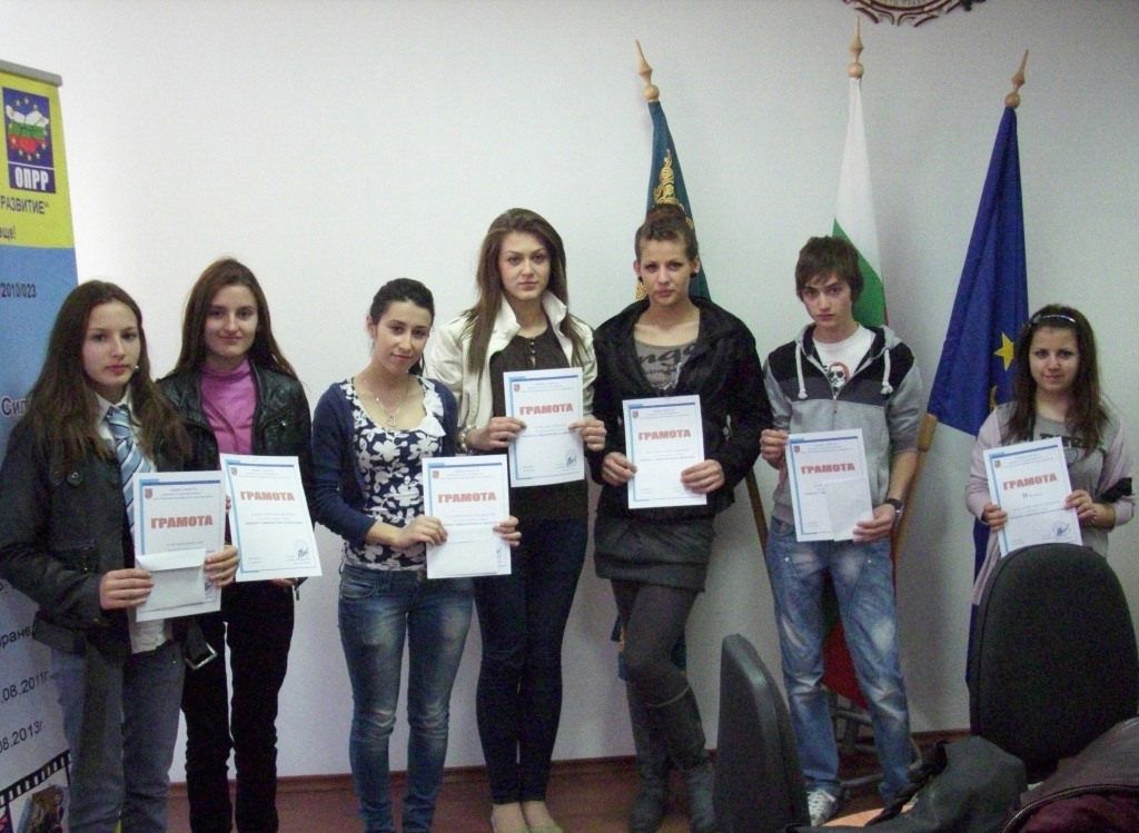 В конкурса за плакат, учениците се включиха в две възрастови групи - от 5 до 7 клас и от 8 до 11 клас. Победители в първа възрастова група станаха възпитаници на ОУ "Св. св. Кирил и Методий". Първо място заслужи Стефани Радославова Момчева, а Свилена Росенова Тютюнджиева и Метин Шезаи Юсеин, заеха съответно ІІ –ро и ІІІ – то място.