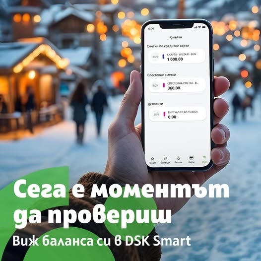 "По-добре е да знаеш какво е положението след празниците. 😅 Погледни баланса по сметката си в DSK Smart сега", гласи съобщението на банката.