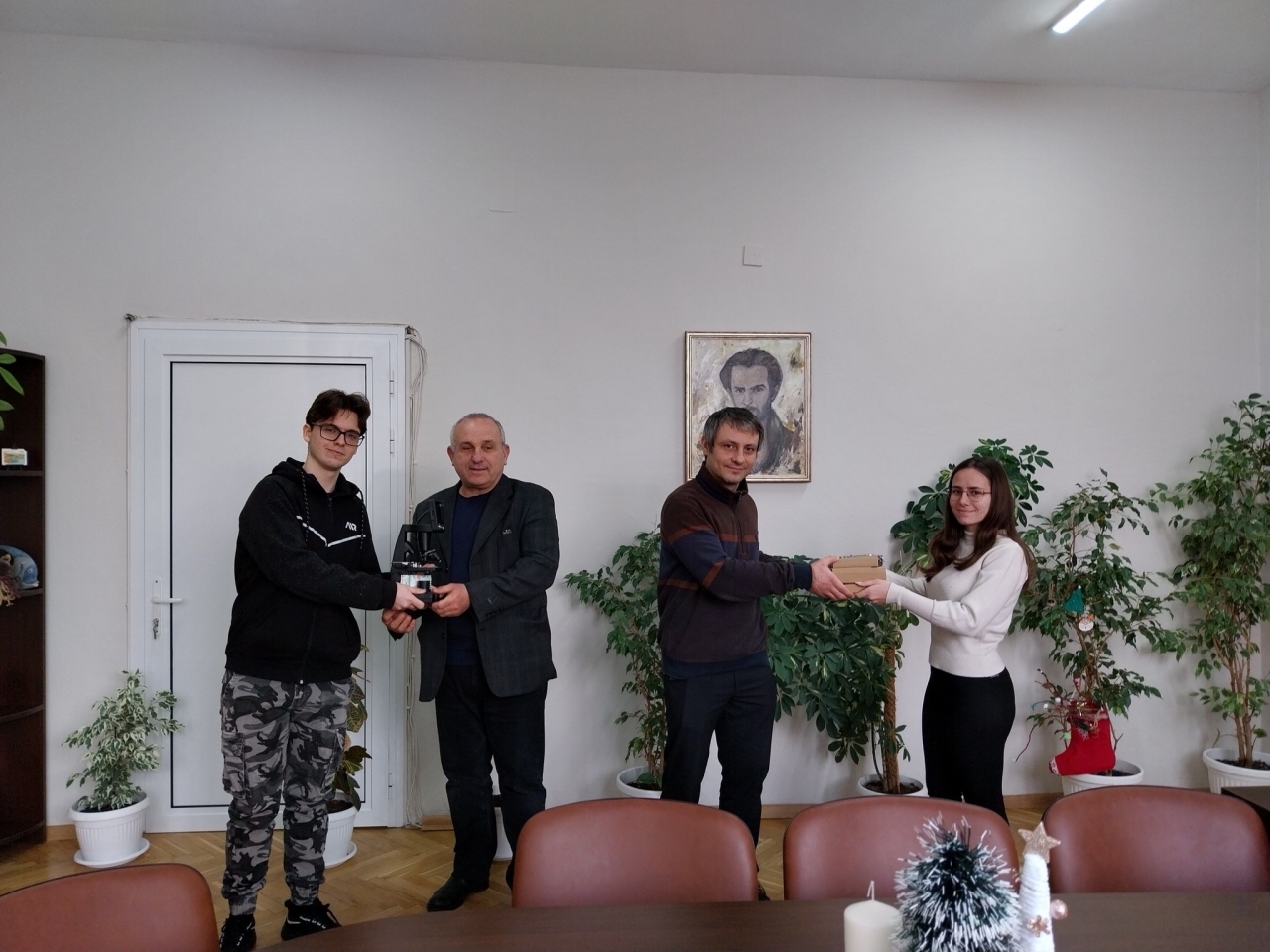 Ученици от 11а клас на СУ "Никола Й. Вапцаров" дариха микроскоп на училището