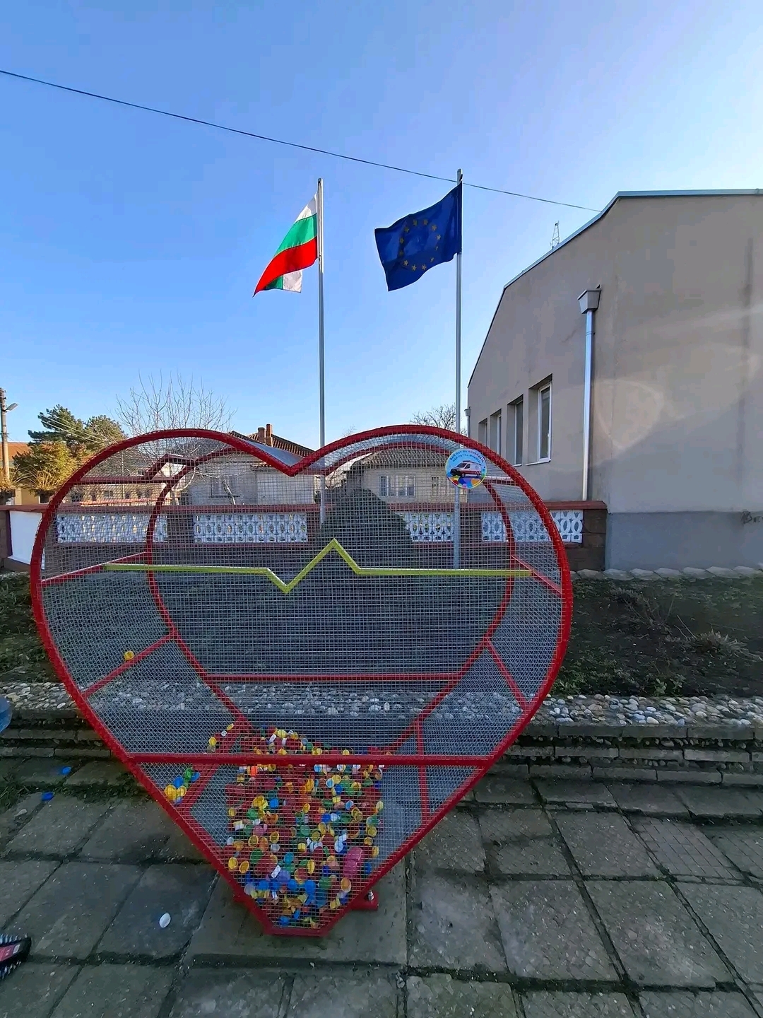 Село Искра, община Ситово, вече разполага със специално създадено голямо метално сърце за събиране на пластмасови капачки.