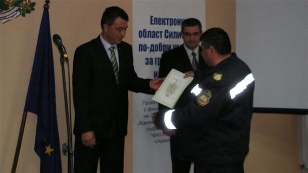32-ма служители на противопожарните служби в Силистренска област бяха наградени днес за участието си в спасителните операции при тежката зимна обстановка тази година. С тяхна помощ до лечебни заведения бяха транспортирани 4 родилки и 30 болни на хемодиализа, бяха извлечени 83 автомобила, закъсали в преспите, а хората от бедстващи села бяха снабдявани със стоки от първа необходимост и лекарства. На всички огнеборци е осигурен допълнителен отпуск, а колективна парична награда от 1 200 лв. получиха 11 служители от група "Спасителна дейност". Церемонията се проведе в областната администрация в Силистра, в присъствието на областния управител Николай Димов и директора на полицията комисар Ивелин Иванов.