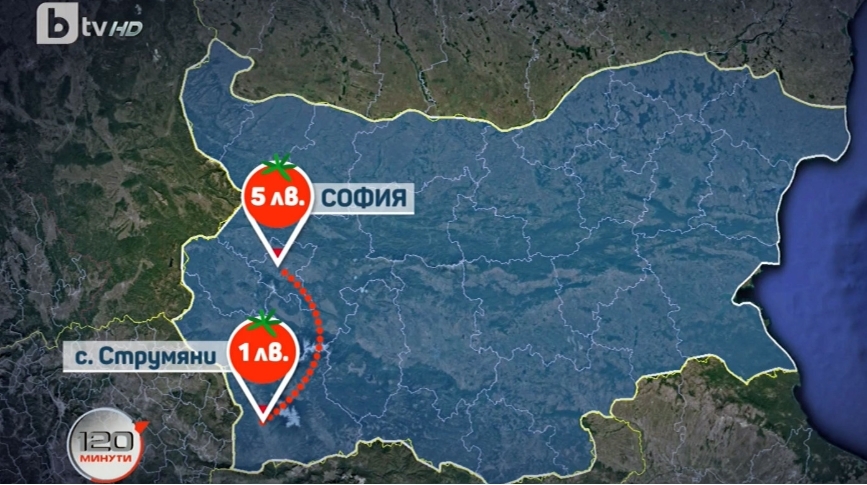 Фермерът Борислав Дамянов от село Струмяни, Благоевградско, споделя, че отглеждането на дома отнема седем месеца, но когато продава продукцията си, той получава едва 80 стотинки за килограм . В това време същите домати достигат до крайните потребители в София на цена от 4,99 лв. за килограм .