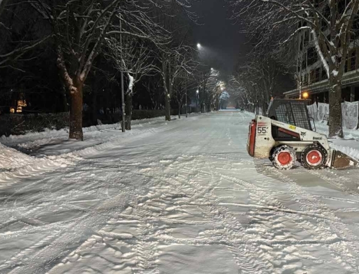 Въпреки продължаващите валежи, пътната обстановка е под контрол, като 18 снегопочистващи машини работят активно по разчистването и опесъчаването на пътищата.