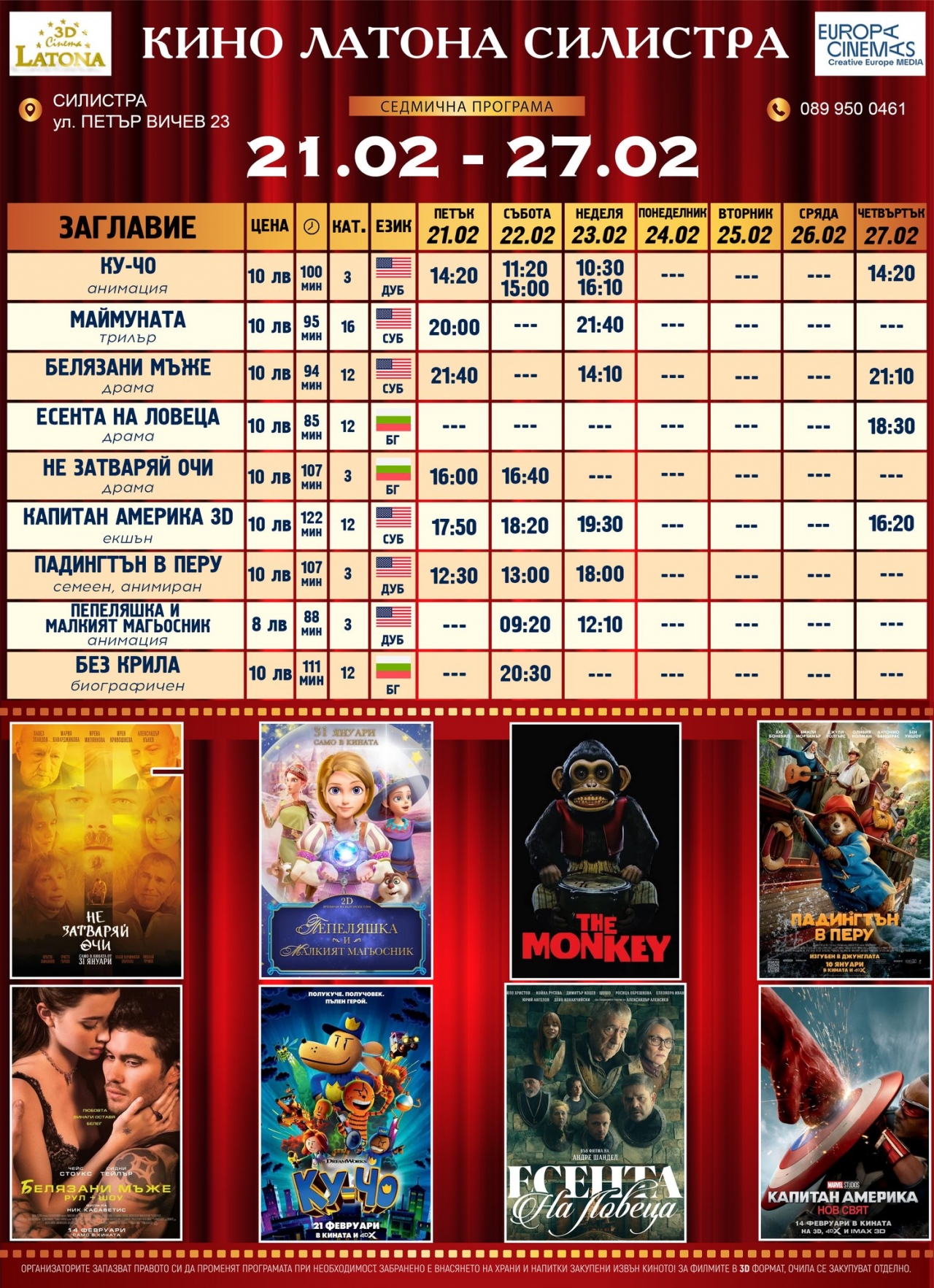 Кино Латона – Силистра представя филмовата програма за седмицата 21-27 февруари