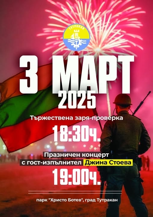 Община Тутракан организира тържествено честване на 3 март – Деня на освобождението на България. Празничната програма ще се проведе на 3 март 2025 г. в парк "Христо Ботев" и ще включва редица събития, посветени на подвига на героите, дали живота си за свободата на страната.