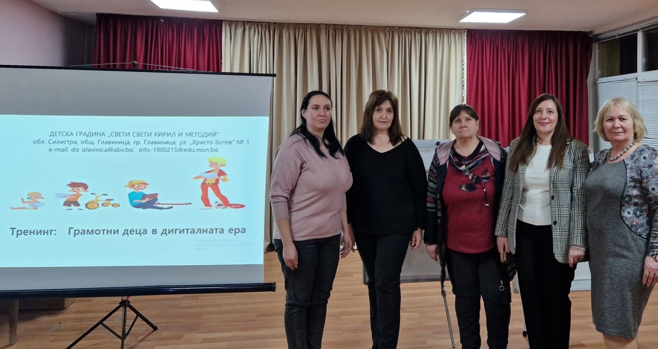 В Детска градина "Св. св. Кирил и Методий", гр. Главиница, се проведе квалификация на тема "Грамотни деца в дигиталната ера", организирана от Комисията за квалификация на педагогическите специалисти. Основен акцент беше поставен върху рисковете, които крие онлайн пространството за децата, и начините за тяхното предпазване.