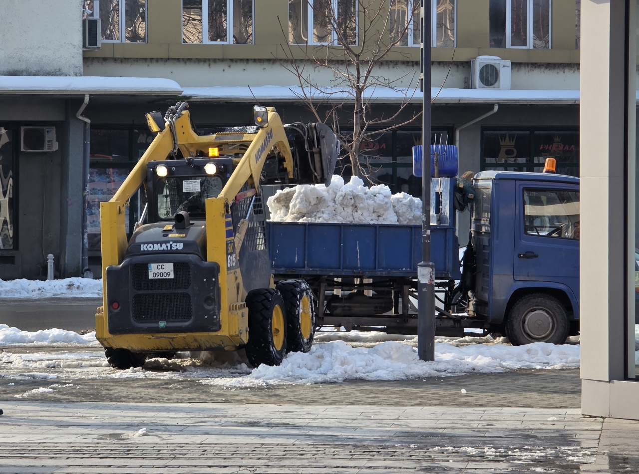 Работата започна рано сутринта, като екипите използваха специализирана техника, включително малък челен товарач "KOMATSU" за събиране на снега и камиони за неговото извозване.