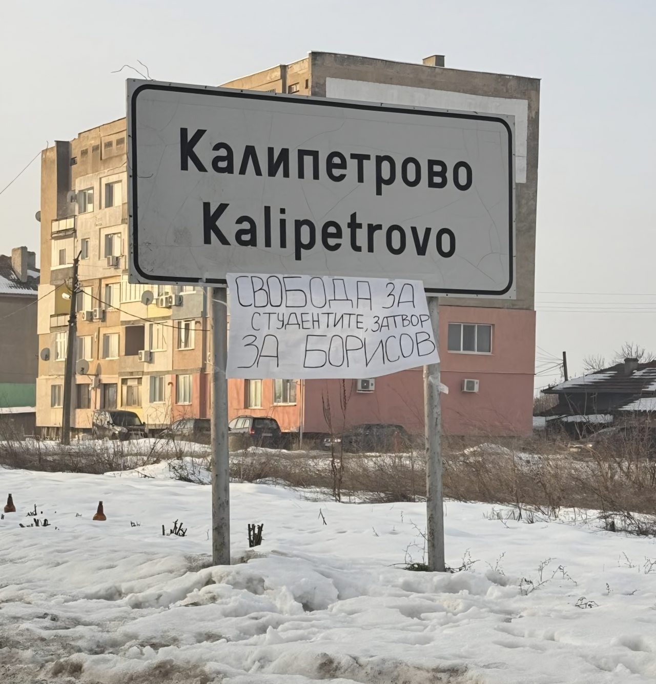 Калипетрово с послание: "Свобода за студентите, затвор за Борисов"