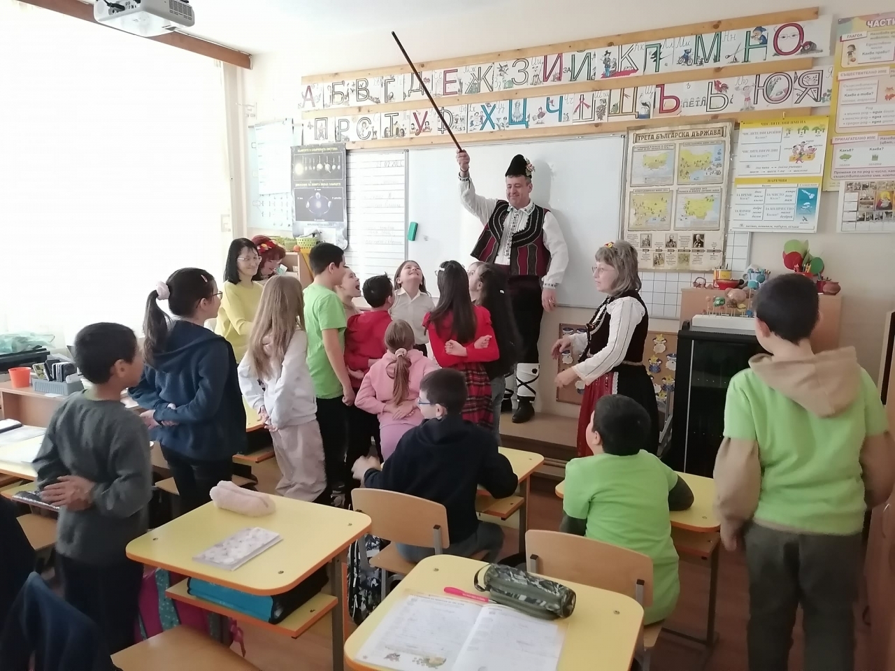 Децата научиха повече за значението на прошката на Сирни Заговезни и обичаите, свързани с кукерите, които прогонват злите сили. Гостите представят модели на кукерски маски и други лазарски носии, а учениците имат възможност да разгледат близо до тези символи на българския фолклор.