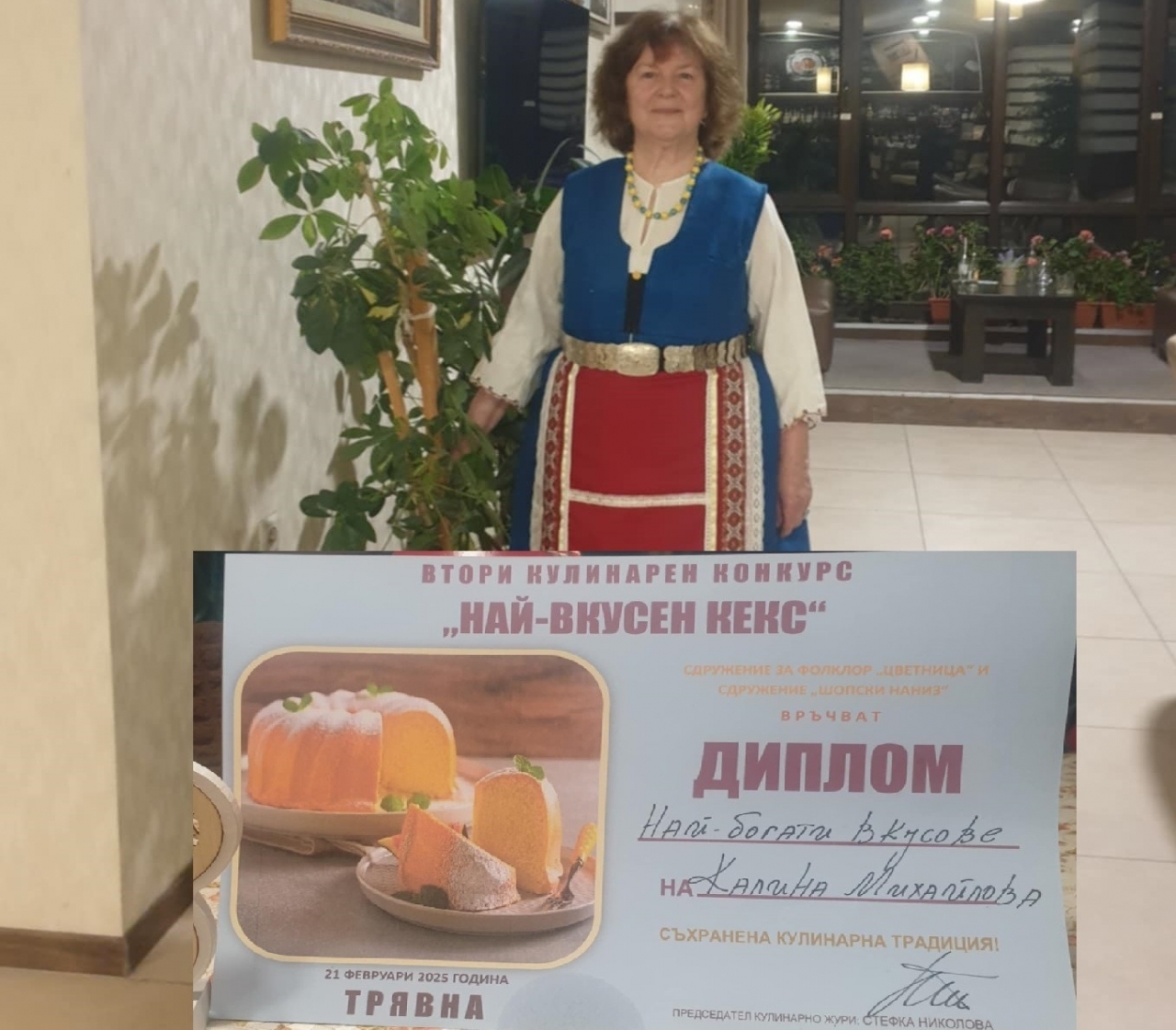 Калина Михайлова с отличие от кулинарния конкурс "Най-вкусен кекс" в Трявна