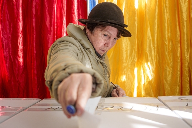 Жена гласува на първия кръг на президентските избори в Румъния, Букурещ, 24 ноември 2024 г. Снимка: AP Photo/Andreea Alexandru