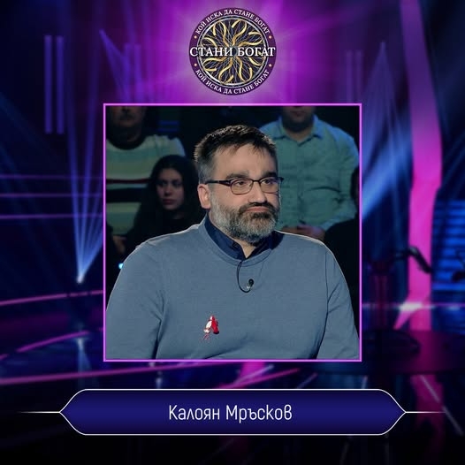 Калоян Мръсков от Силистра впечатли зрителите на популярната телевизионна игра "Стани богат", излъчвана по bTV. Фармацевт, музикант и собственик на аптеки, той демонстрира отлични познания и успешно отговори на въпрос за 1000 лева.