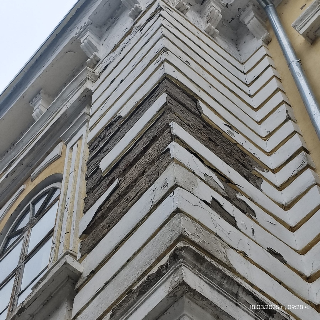 Влагата и силният вятър продължават да рушат фасадата на Художествената галерия в Силистра, алармира буден гражданин "Кворум". Част от мазилката на емблематичната сграда, която е неразделна част от историческото наследство на града и присъства в герба на общината, е паднала, оставяйки видими щети по конструкцията.
