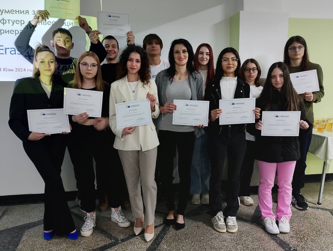 Във втората част на събитието учениците споделиха още едно незабравимо преживяване – своето участие в програма "Еразъм+" през лятото на 2024 г. Те представиха своето пътуване до Болоня, Италия, където имаха възможност да се запознаят с европейски добри практики в сферата на строителството, интериорния дизайн и образованието. Разказите им бяха съпроводени от снимки и истории за културния обмен, новите приятелства и вдъхновяващите моменти, които са преживели.