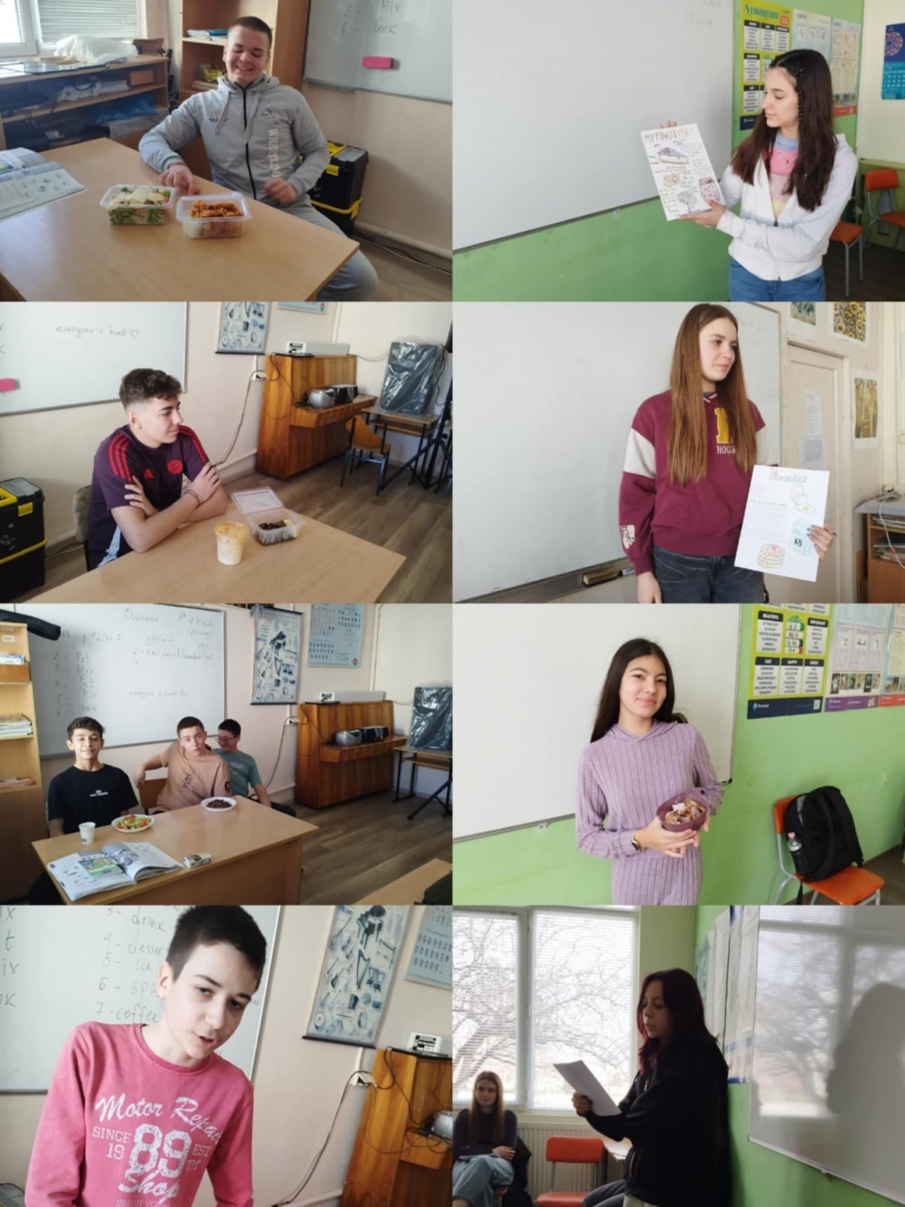 Някои от учениците дори използваха реални кулинарни изделия, за да илюстрират своите разкази, което допринесе за още по-голям интерес към урока. В края на заниманието, участниците с удоволствие споделиха храната помежду си, което превърна събитието в истински празник на вкусовете и традициите.