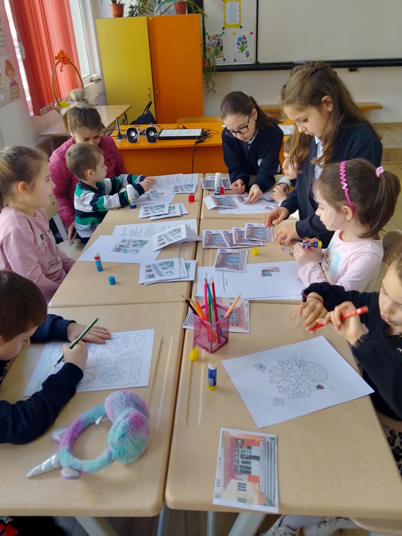 Децата участваха в творчески ателиета, където, ръководени от учители и ученици, изработваха пролетни картички, пъзели и оцветяваха тематични рисунки. С ентусиазъм и сръчност малчуганите пресъздадоха цветните багри на пролетта, като същевременно развиваха креативността и фината си моторика.
