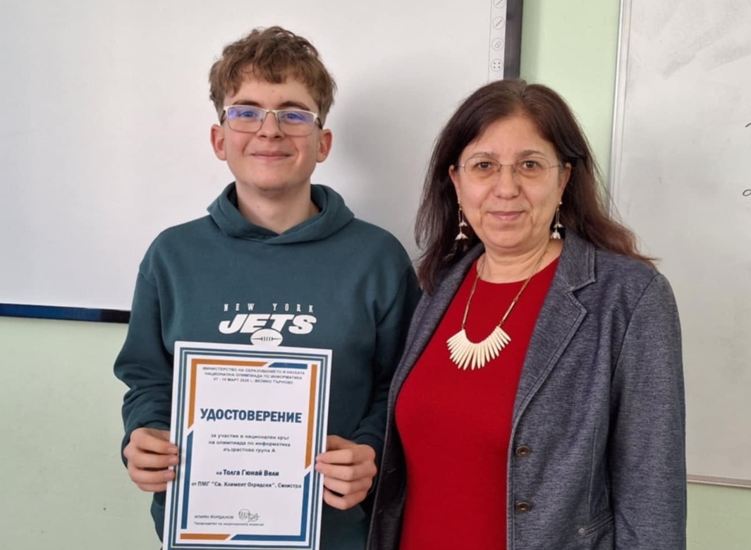Силистра има нов повод за гордост – Толга Вели, ученик от 11. клас на ПМГ "Св. Климент Охридски", се представи достойно на Националния кръг на олимпиадата по информатика, който се проведе в периода 7 – 10 март 2025 г. в град Велико Търново.