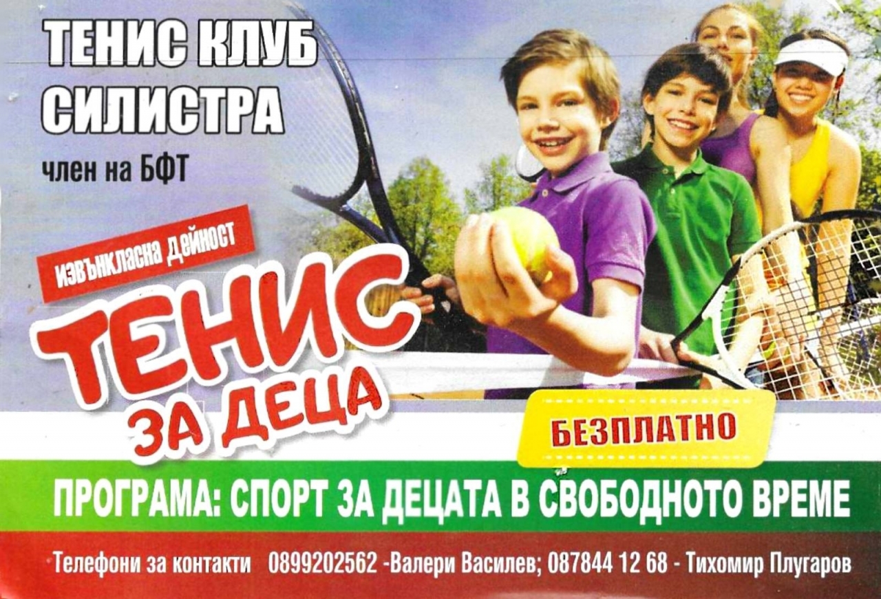 Силистренските деца ще имат възможност да се включат в безплатни тренировки по тенис, които започват от утре 1 април 2025 г. Инициативата се реализира от Тенис клуб "Силистра", член на Българската федерация по тенис, в рамките на националната програма "Спорт за децата в свободното време", финансирана от Министерството на младежта и спорта.