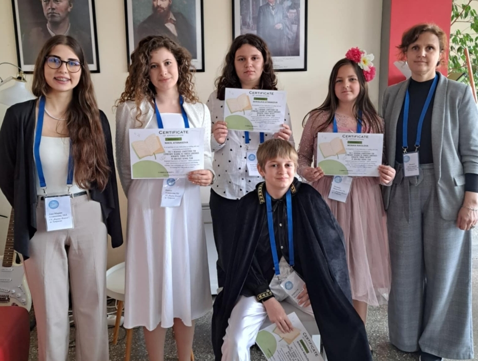 Възпитаниците на училището, обучаващи се в Езиково-комуникативния кабинет "Чужди езици", се представиха в три от четирите възрастови групи и демонстрираха висока езикова култура и артистични умения в интерпретирането на литературни текстове.