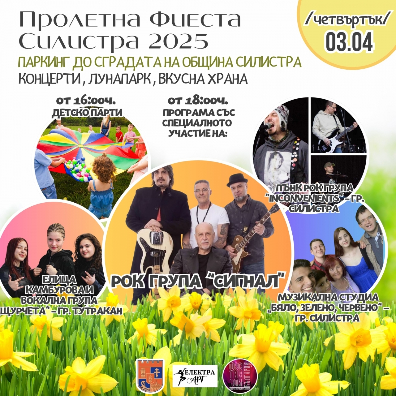 От днес Силистра ще стане едно от най-очакваните събития на пролетта – "Пролетна фиеста Силистра 2025", която ще се проведе от 3 до 6 април на паркинга до сградата на Община Силистра. Организатори на празника са Община Силистра и "Електра Арт", а програмата обещава незабравими мигове за жителите и гостите на града.