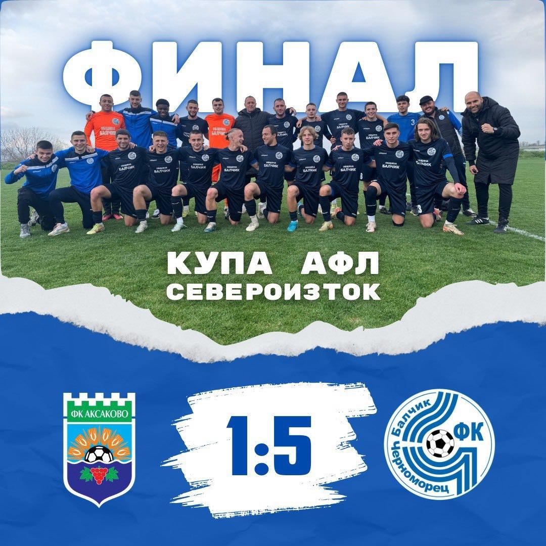 Отборът на Черноморец (Балчик) се класира за заключителната фаза на турнира за Купата на Аматьорската футболна лига, след като постигна категорична победа с 5:1 срещу тима на Аксаково в мача за трофея на Североизточна България. Двубоят се игра на стадиона в добричкото село Рилци.