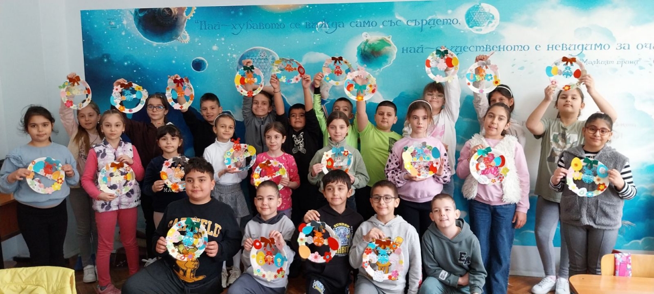 Креативността на учениците бе вдъхновена и от практическата част на работилницата, в която те сътвориха цветни венци – символ на пролетното възраждане и жизнеността на българските традиции.
