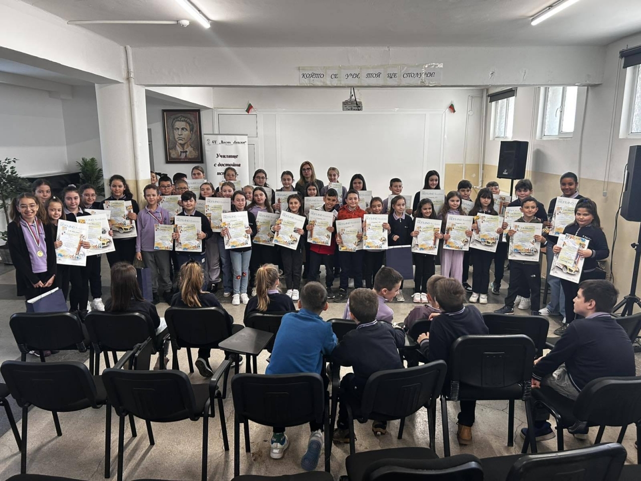 Дулово, 8 април 2025 г. – Вълнуващо събитие беляза днешния ден в СУ "Васил Левски" – град Дулово, където се състоя официалната церемония по награждаване на учениците, взели участие в конкурса за детска рисунка, посветен на Международния ден на детската книга – 2 април. Конкурсът бе под надслов "Моята любима приказка" и вдъхнови десетки млади таланти да представят чрез своето изкуство любимите си литературни герои и вълшебни светове.
